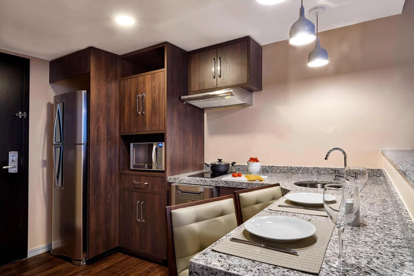 Treat yourself to an elevated travel experience at the Residence Inn Rio de Janeiro Barra da Tijuca. Our newly built Barra da Tijuca hotel is located in the newest neighborhood in town, just a few minutes away from Rio Olympic Park, RioCentro Convention Center and Barra Shopping. Whether you're coming for a short or an extended-stay in Rio de Janeiro, our Barra da Tijuca hotel is perfect for your work travel or vacation getaway. Discover your home away from home at our hotel in Barra da Tijuca. Enjoy spacious studios and suites with full kitchens and modern amenities. Start your day off right with a full and authentic breakfast. When it's time to focus on work, stay connected with complimentary Wi-Fi. Adjacent to the Courtyard hotel, we offer meeting rooms for your corporate or social events. For your spare moments, keep up with your healthy routine and enjoy a well-equipped fitness center and outdoor swimming pool at our apart hotel in Rio de Janeiro.